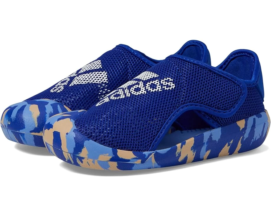 The primary materials that compose this product contain a minimum of 20 percent recycled content.SKU: #9813304A stylish upgrade on everyday sandals, the adidas® Kids Altaventure Sport Swim Sandals are high in style and functionality. Breathable mesh upper. Textile lining and insole. Soft EVA footbed.Large instep with hook-and-loop closure.Signature brand name on the upper. Round toe silhouette. Rubber outsole with added traction. Imported. Product measurements were taken using size 9 Toddler, width M. Please note that measurements may vary by size.Measurements: