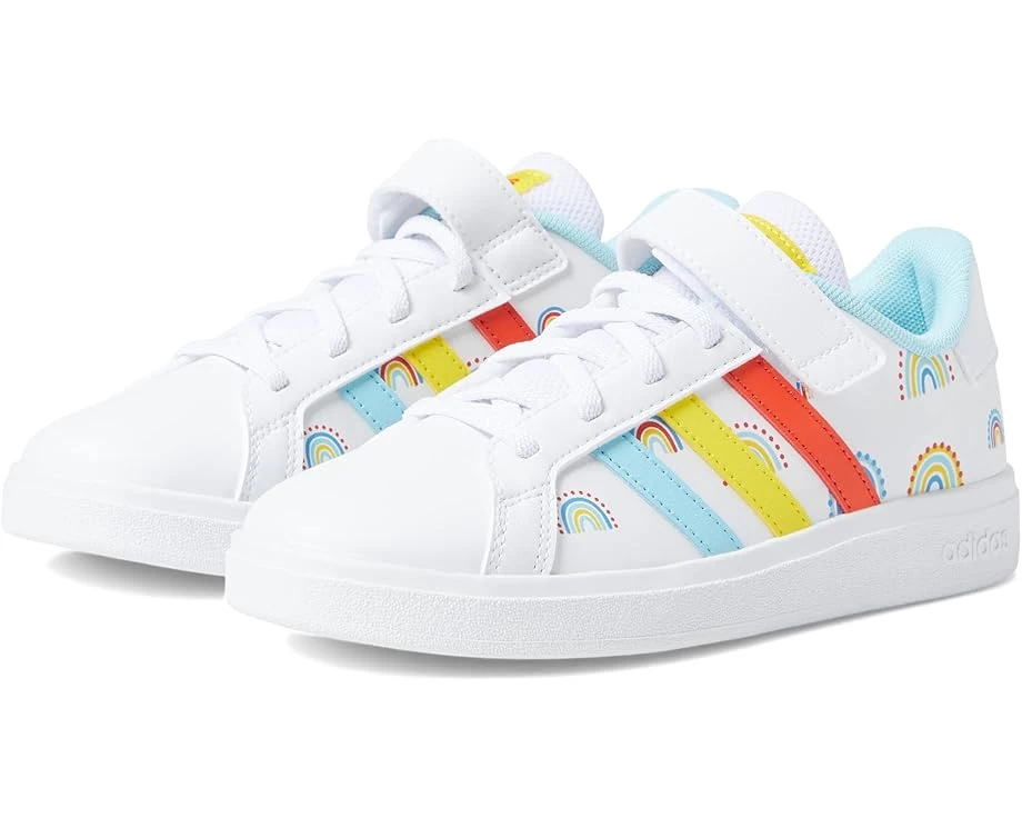 The primary materials that compose this product contain a minimum of 20 percent recycled content.SKU: #9713216Make your little one’s exercise and running session more active by getting them wear adidas® Kids Grand Court 2.0 sneakers which is super comfortable.Synthetic leather upper.