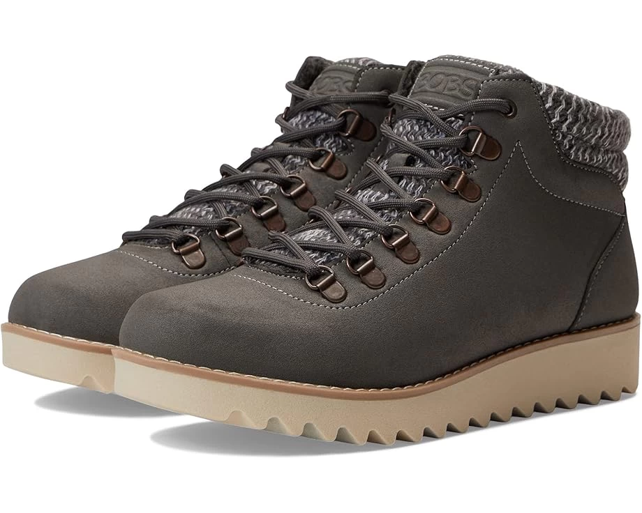 For information on how BOBS contributes to the community, please visit the About page.SKU: #9739786When comfort is your priority, the comfortable and classy BOBS from SKECHERS® Mountain Kiss is a perfect choice. Smooth microfiber fabric upper with smooth ‘microleather’ finish texture.Textile lining. Memory foam cushioned comfort insole.Classic lace-up closure with metal D-rings and top eyelets.Stitching accents on the upper. Soft sweater knit fabric collar trim.Padded collar and tongue for superior cushioning. Heel panel overlay with pull tabs with easy wear and removal.Shock absorbing midsole.Round toe silhouette. Flexible rubber outsole featuring a sawtooth pattern. Imported. Product measurements were taken using size 9, width B – Medium. Please note that measurements may vary by size.Measurements: