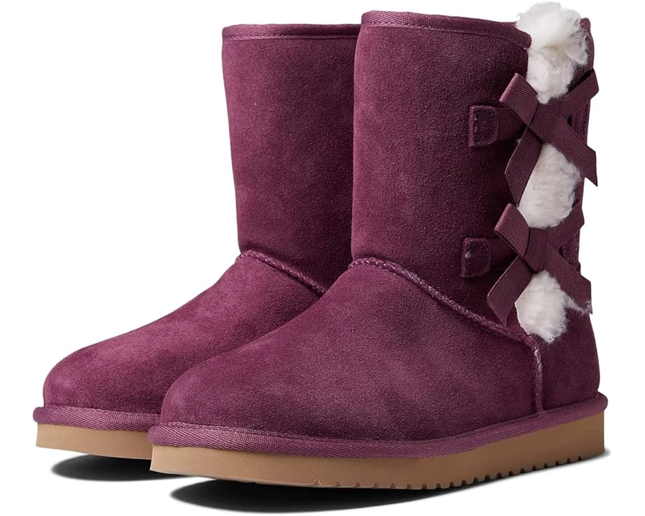 For all the ladies looking for a little bit of seasonal sweetness, the Koolaburra by UGG® Victoria Short boots are just for you.SKU: #9103245Soft suede upper adorned with dainty bows and a row of plush, exposed sheepskin.Slip-on design.Closed, rounded toe.Faux-fur and shearling interior offer an amazing comfort experience. This product contains real fur: Sheepskin, dyed and treated from Australia.Durable EVA outsole.Imported.Product measurements were taken using size 9, width M. Please note that measurements may vary by size.Measurements: