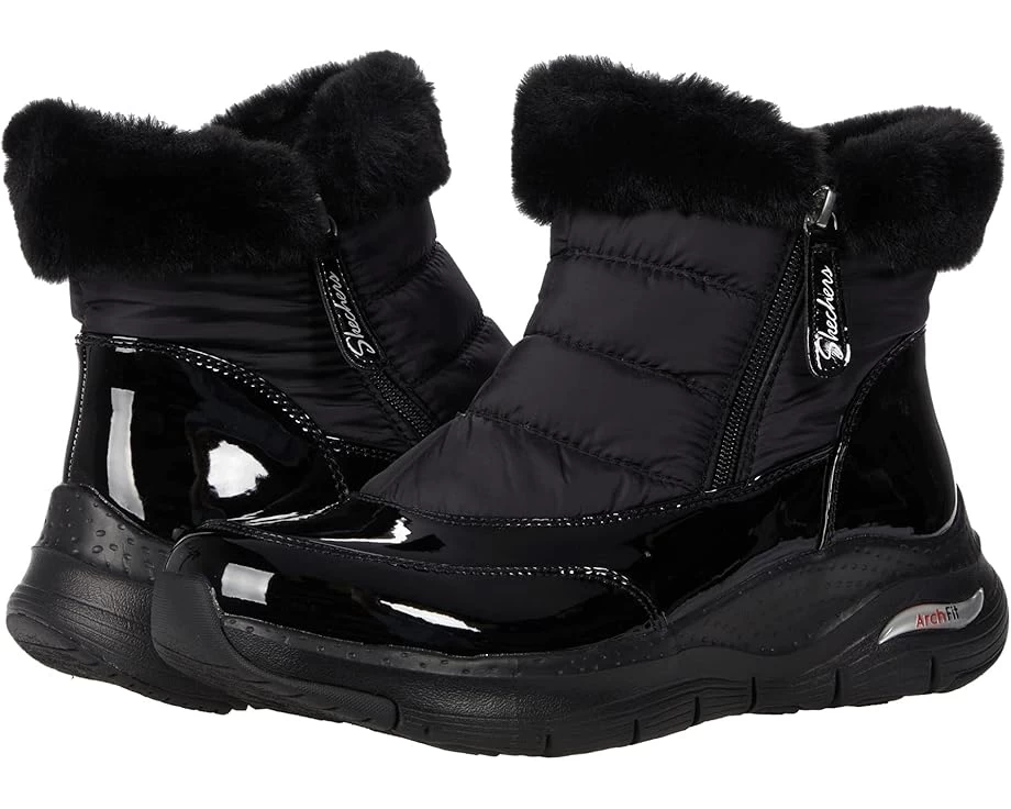 Keep your feet dry and protected from the elements in the SKECHERS® Arch Fit – Cool Puff boots. SKU: #9560452Winter bootie style with a round toe.Slip-on entry with inside zipper and outside zipper detail.