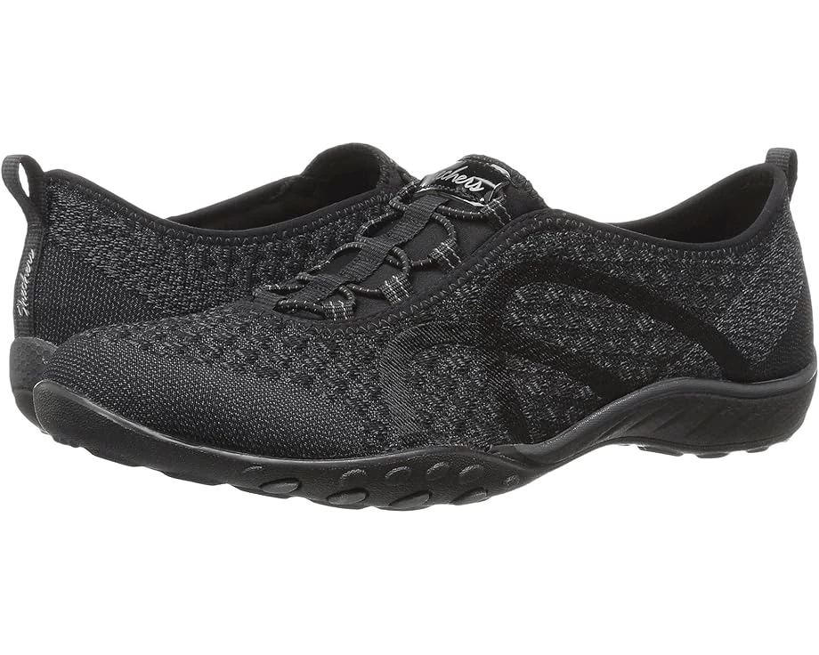 The SKECHERS® Breathe-Easy – Fortuneknit sneaker embodies casual comfort with a soft knit mesh fabric upper, tonal knit-in side stripes, and open weave panels at the toe and sides.SKU: #8813006Slip-on construction with bungee laced front panel.Rounded toe.Relaxed Fit® design offers a roomier fit.Soft fabric lining.Air Cooled Memory Foam™ cushioned insole provides added comfort.Shock-absorbing midsole.