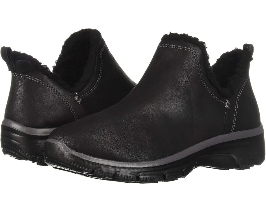 The SKECHERS® Easy Going – Buried ankle boot will modernize your casual look with a microfiber fabric upper, leather-like finish, and a roomy Relaxed Fit® design.SKU: #9104160Pull-on construction with cutaway sides for easy wear.Rounded toe with durable reinforcement.Rear pull-tab.Soft, faux-fur collar trim.Contrast stitching along topline.Soft faux-fur and fabric lining.Air Cooled Memory Foam™ cushioned insole for added comfort.Lightweight, shock-absorbing midsole.Flexible traction outsole.Imported.Product measurements were taken using size 7.5, width B – Medium. Please note that measurements may vary by size.Measurements:
