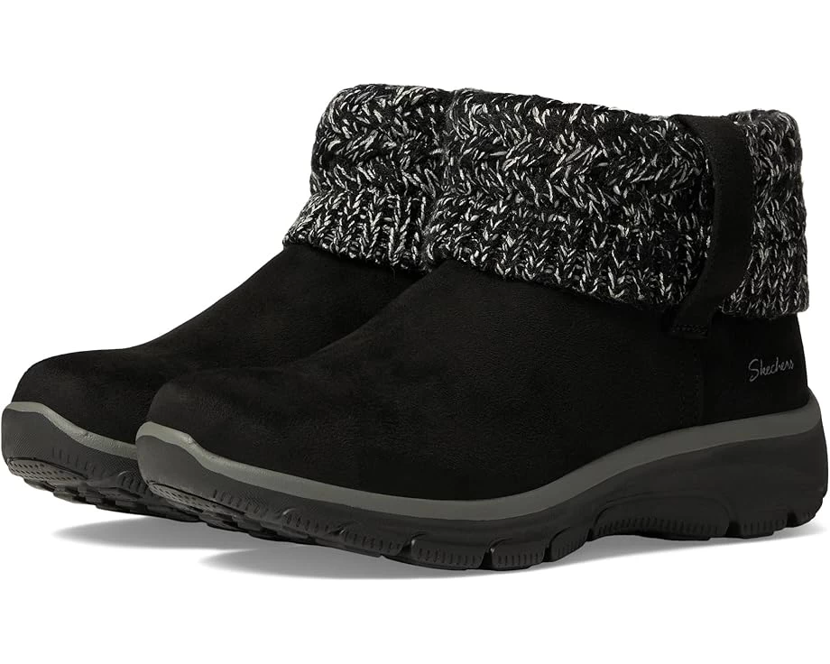 Step out in cozy style SKECHERS® Easy Going – Cozy Weather sweater boots with fold-over sweater-knit trim.SKU: #9788556Microfiber and sweater knit upper construction.Skechers Air-Cooled Memory Foam® cushioned comfort insole.Fabric lining. Removable footbed. Relaxed Fit® for a roomy comfort fit at toe and forefoot.Treated with 3M® Scotchgard® to resist water and stains. Slip-on style. Pull tab on the side.Raised round toe silhouette.EVA midsole. Rubber outsole. Measurements: