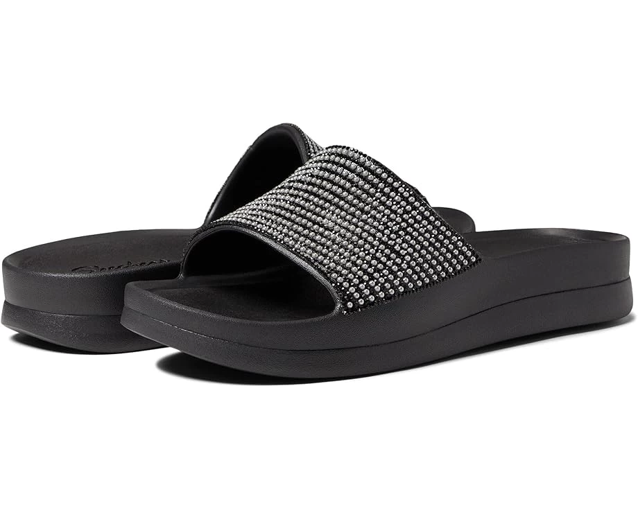 Add-on some sparkling style to your collection getting SKECHERS® Foamies Cali Charm – Be Fancy footwear.SKU: #9629729Flexible EVA upper.Synthetic lining and contoured Luxe Foam® footbed.Casual sculpted one band design.Water friendly.Slide-on style.Open toe.Thick platform.Mini pearl and rhinestone embellishments on vamp.Skechers® logo detail.Flexible traction outsole.Imported.Measurement: