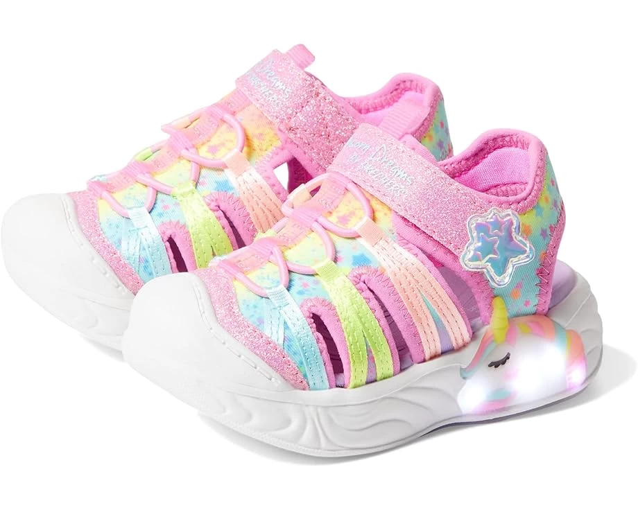 Keep your little one’s feet relaxable with the SKECHERS® KIDS Lighted – Unicorn Dreams Explorer 303102N sneakers.SKU: #9871343Ombre neoprene and synthetic upper with satin ribbon trim. Cushioned comfort lining and removable footbed. Hook-and-loop closure. Light-up design with embossed heel graphic.