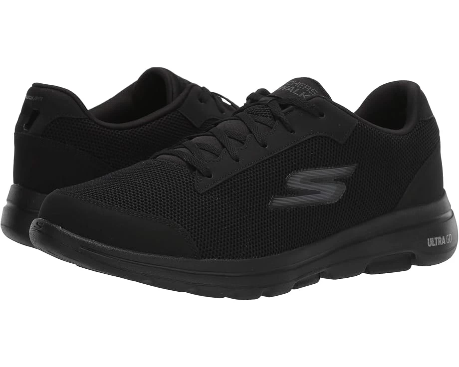 The SKECHERS® Go Walk 5 – Demitass sneaker will simplify your casual style with a breathable mesh upper, lightweight construction, and optimal comfort features.SKU: #9287216Knit mesh fabric upper material features a woven finish.Synthetic overlays at the toe, laces, and heel panel for added durability.Classic round toe with lace-up construction offering a secure fit.Padded tongue and collar.Quick-Fit Portal™ at the heel panel offers easy entry. Signature logo accents at the tongue, side, and toe bumper.Breathable fabric lining.Lightweight, responsive ULTRA GO™ cushioning.Air Cooled Goga Mat® breathable insole provides high-rebound cushioning.High-rebound COMFORT PILLAR TECHNOLOGY™ underfoot react to your every step for the ultimate comfort.Dual-density outsole provides stability and support.Imported.Product measurements were taken using size 12, width EE – Wide. Please note that measurements may vary by size.Measurements: