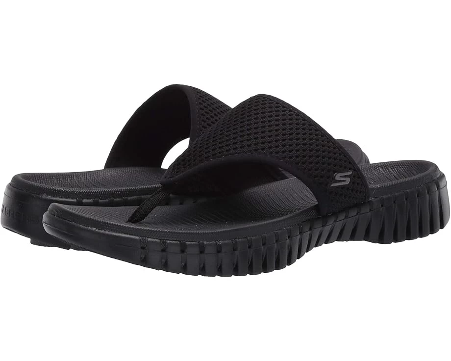 The SKECHERS® Go Walk Smart – Rivi sandal will add effortless comfort to your warm-weather look with easy slip-on styling, a knit mesh fabric upper, and a thong-style silhouette.SKU: #9365848Open toe with center thong post.Signature logo accent at the side strap and heel bumper.Breathable fabric lining.Goga Mat Technology® footbed provides optimal cushioning and support.Lightweight, responsive ULTRA GO™ midsole cushioning.Articulated GOwalk Smart™ midsole and outsole.Dual-density outsole provides stability and support.Imported.Product measurements were taken using size 8, width B – Medium. Please note that measurements may vary by size.Measurements: