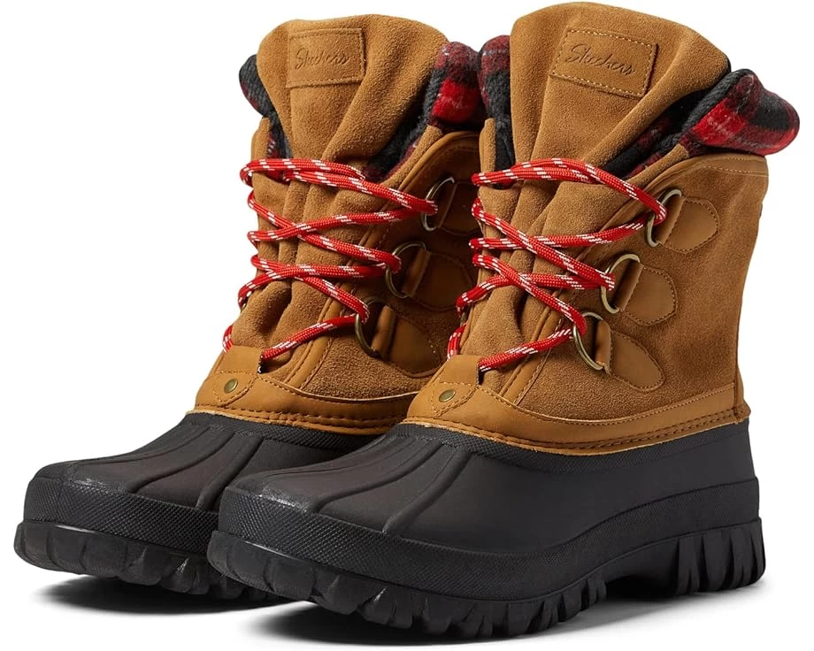 These SKECHERS® Windom – Plaid Town Winter and Snow Boots keep you warm and dry during the snowy weather.SKU: #9560490Water-resistant suede and synthetic upper.Skechers® Warm Tech Memory Foam™ insole.Textile lining.D-ring eyelets with lace-up closure.Gusseted tongue for protection against dirt and dust.Pull tab at the back for easy on/off.Signature brand label at the side.Rubber outsole.Imported.Product measurements were taken using size 9, width B – Medium. Please note that measurements may vary by size.Weight of footwear is based on a single item, not a pair.Measurements:
