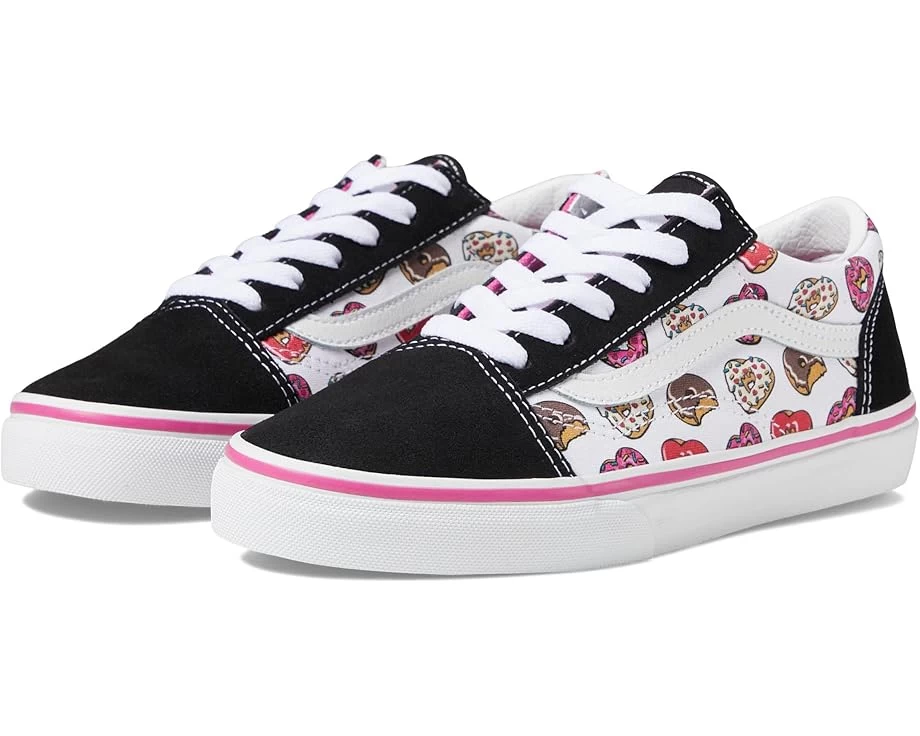 Retro lines for the next generation! From their favorite flannels, to tried and true denims, they’ll be trending and timeless in these Vans® Kids Old Skool sneakers!SKU: #9339827These iconic kicks feature a low-top silhouette with a reinforced toe-cap and classic side-stripe detailing in a durable suede and canvas upper. Blind eyelets and a traditional lace-up closure seal the old-school deal. A breathable textile lining and comfort-cushioned insole make all-day wear a no-brainer.Platform midsole with signature Vans heel patch.Signature vulcanized rubber waffle outsole provides optimal grip.Imported.Product measurements were taken using size 5 Big Kid, width M. Please note that measurements may vary by size.Measurements: